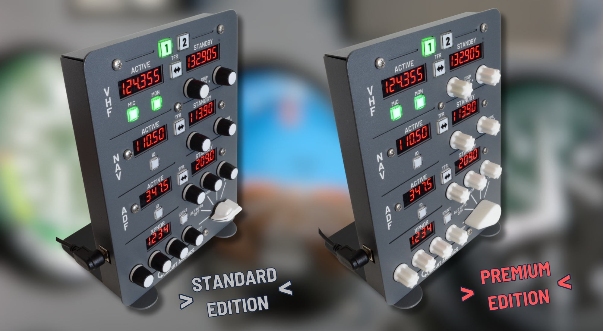 The only difference between the editions is the aesthetic look of the control knobs, including the Transponder / TCAS knob