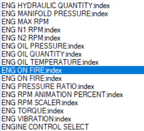 MSFS Engine Variables. If the value of ENG ON FIRE is ever 1, you might want to land