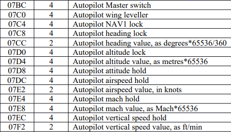 (the four-letter code is the FSUIPC Offset i.e. the variable)