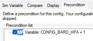 Our Autopilot has a 2-position BARO MODE switch. The positions are INHG (Inches) or HPA (Millibars). We only want to show Millibars if the switch is in HPA. This is accomplished with a simple precondition:
