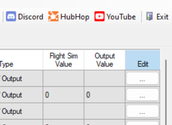 Outputs tab of Mobiflight.