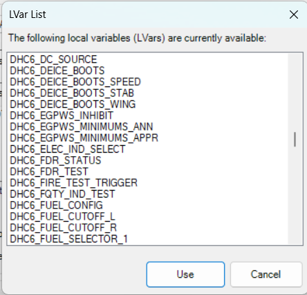 L:VARs shown for the Aerosoft Twin Otter