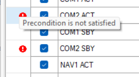 The inputs and outputs for our VHF2/NAV2/ADF2 will show the "precondition not satisfied" warning. This is normal behaviour.