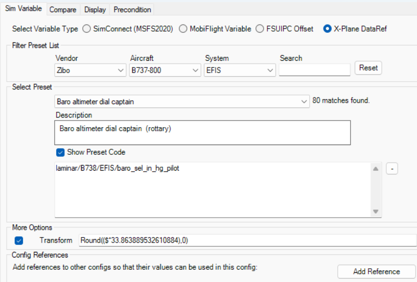 Setting up BARO in X-Plane's Zibo 737 was going fine, except that the only available pressure variable (baro_sel_in_hg_pilot) was for Inches, not Millibars.